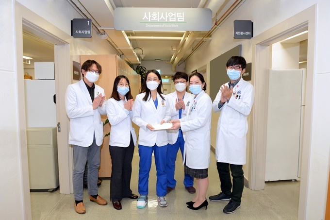 [µ¥Àϸ®¸Þµð °íÀç¿ì ±âÀÚ] ¿¬¼¼ÀÇ·á¿øÀº ¼Ò¼Ó º´¿ø°ú ±¹¹Î°Ç°º¸Çè Àϻ꺴¿ø ¼Ò¼Ó ÀüÀÓÀÇ 335¸íÀÌ ºñ±Þ¿© Ç×¾ÏÁ¦·Î ÀÎÇÑ Ä¡·áºñ·Î Èûµé¾îÇϴ ȯÀÚµéÀ» µ½°íÀÚ ±âºÎ±Ý 800¸¸ ¿øÀ» »çȸ»ç¾÷ÆÀ¿¡ Àü´ÞÇß´Ù°í 5ÀÏ ¹àÇû´Ù.