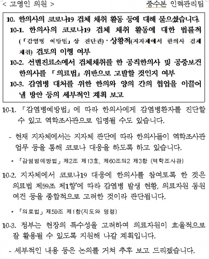 ½ÇÁ¦ Á¤ºÎ´Â ±×µ¿¾È ÇÑÀÇ»çÀÇ °ËüäÃë µî °¨¿°º´ °ü·Ã ¾÷¹« ¼öÇà¿¡ ´ëÇØ ‘ÀûÀýÄ¡ ¾Ê´Ù’´Â ÀÔÀåÀ» °í¼öÇØ¿Ô´ø Á¡À» °¨¾ÈÇÏ¸é ³í¶õÀÌ ¿¹»óµÈ´Ù.