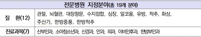 ÇÑÆí, 2011³â óÀ½ ¼±À» º¸ÀÎ Àü¹®º´¿ø Á¦µµ´Â µµÀÔ ´ç½Ã¿¡´Â Áúȯ 9°³, Áø·á°ú¸ñ 9°³, Çѹæ 3°³ ºÐ¾ß µî ÃÑ 22°³ ºÐ¾ß·Î ½ÃÀ۵ƴÙ.