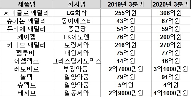 °¡Àå °¡ÆÄ¸¥ »ó½Â¼¼¸¦ º¸ÀΠǰ¸ñÀº HKÀ̳뿣ÀÇ P-CAB °è¿ À§Àå¾à 'ÄÉÀÌĸ'ÀÌ´Ù. ÄÉÀÌĸÀº 3ºÐ±â¿¡¸¸ Àü³â µ¿±â ´ëºñ 164.1% Áõ°¡ÇÑ 200¾ï¿ø ó¹æµÆ´Ù.