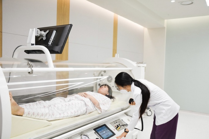 ¿Õ¼øÁÖ ±³¼ö : ÇѸ²´ëµ¿Åº¼º½Éº´¿ø °í¾Ð»ê¼ÒÄ¡·á¼¾ÅÍ´Â ´ÙÀοë è¹ö¿Í 1Àοë è¹ö¸¦ ÇÔ²² °®Ãß°í ÀÖ´Ù. ´ÙÀοë è¹ö´Â ÀÇ·áÁøÀÌ È¯ÀÚ ¿·¿¡ µ¿¹ÝÇÑ »óÅ¿¡¼ °í¾Ð»ê¼ÒÄ¡·á°¡ °¡´ÉÇØ ÁßÁõȯÀÚµµ °í¾Ð»ê¼ÒÄ¡·á¸¦ ¹ÞÀ» ¼ö ÀÖ´Ù. ÃÖ±Ù Äڷγª19¸¦ ºñ·ÔÇÑ °¨¿°ÁúȯÀ¸·Î ÀÎÇØ µ¶¸³µÈ Ä¡·á°ø°£ Á¦°øÀÇ Á߿伺ÀÌ Ä¿Áö´Âµ¥, 1Àοë è¹ö¿¡¼´Â °¨¿° ȯÀÚ ¹× °¨¿° ÀǽÉȯÀÚ¸¦ ºÐ¸®µÈ °ø°£¿¡¼ Ä¡·áÇÒ ¼ö ÀÖ´Ù.
