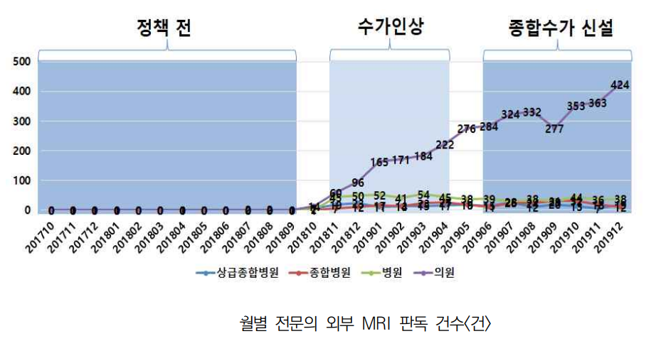 ¿¬±¸ÆÀ¿¡ µû¸£¸é »ó±ÞÁ¾ÇÕº´¿ø°ú Á¾ÇÕº´¿ø, º´¿ø¿¡¼´Â ¿ÜºÎ MRI ÆÇµ¶ÀÌ ¼ö°¡Àλó ±â°£ ¹× Á¾ÇÕ¼ö°¡°¡ ½Å¼³µÈ ±â°£ »çÀÌ¿¡ Å« Áõ°¨ÀÌ ¾ø´Âµ¥, À¯µ¶ ÀÇ¿ø±Þ¿¡¼´Â ¼ö°¡°¡ ÀλóµÈ ½ÃÁ¡ÀÎ 2018³â 10¿ùºÎÅÍ Á¾ÇÕ¼ö°¡°¡ ½Å¼³µÈ 2019³â 12¿ù±îÁö 96°Ç¿¡¼ 424°ÇÀ¸·Î ¼öÁ÷ »ó½ÂÇß´Ù.