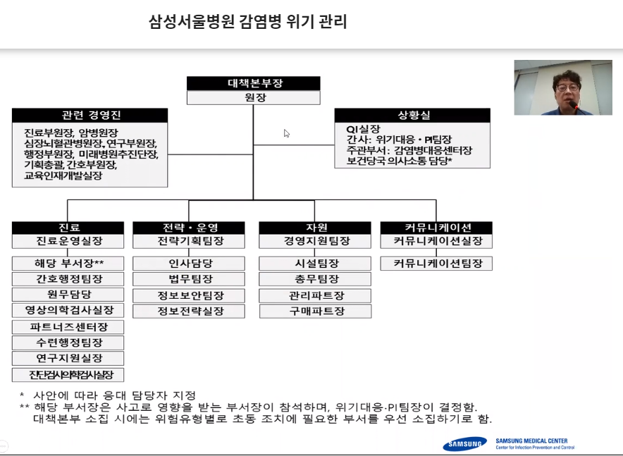 ´ëÇѺ´¿øÇùȸ°¡ 26ÀÏ ¿Â¶óÀÎÀ¸·Î ÁøÇàÇÑ ‘Korea Healthcare Congress(KHC) 2020’¿¡¼ Á¤µÎ·Ã »ï¼º¼¿ïº´¿ø °¨¿°º´´ëÀÀ¼¾ÅÍ ¼¾ÅÍÀåÀº ‘»ï¼º¼¿ïº´¿ø °¨¿°º´ À§±â °ü¸®’¸¦ ÁÖÁ¦·Î ¸Þ¸£½º »çÅ ¶§¿Í´Â ´Ù¸¥ ¼¿ï»ï¼º¼¿ïº´¿øÀÇ Äڷγª ´ëÀÀ °úÁ¤À» ¼³¸íÇß´Ù.