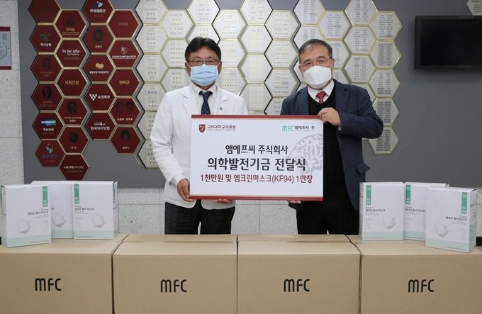 [µ¥Àϸ®¸Þµð ¹Ú´ëÁø ±âÀÚ] ¿ø·áÀü¹®Á¦¾à±â¾÷ MFC(´ëÇ¥ÀÌ»ç Ȳ¼º°ü)°¡ ÃÖ±Ù °í·Á´ëÇб³ Àǰú´ëÇÐ(ÇÐÀå À±¿µ¿í)¿¡ ÀÇÇйßÀü±â±Ý 1000¸¸¿ø°ú KF94 ¸¶½ºÅ© 1¸¸ÀåÀ» ±âºÎÇß´Ù.