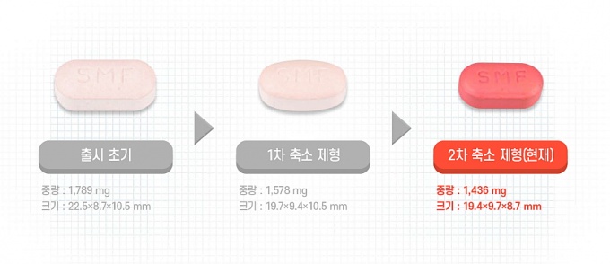 ±âÁ¸ ´ëºñ Á¤Á¦ ±æÀ̸¦ DPP-4 ÀúÇØÁ¦¿Í ¸ÞÆ®Æ÷¸£¹Î º¹ÇÕÁ¦ Áß °¡Àå ªÀº 19.4mm·Î Ãà¼ÒÇßÀ¸¸ç, µÎ²²¸¦ 17% °¡·® ÁÙ¿´´Ù. ¶ÇÇÑ À¯¼±Çü ¸ð¾çÀ¸·Î º¯°æµÆ´Ù.