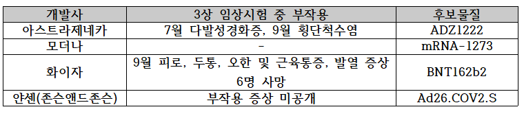 °¡Àå ÃÖ±ÙÀº 10¿ù 22ÀÏ¿¡´Â ÀÓ»ó½ÃÇè¿¡ Âü°¡ÀÚ »ç¶÷ Áß »ç¸ÁÀÚ°¡ ¹ß»ýÇß´Ù. ÇÏÁö¸¸ ÀÌ »ç¶÷Àº ¹é½Å Á¢Á¾À» ¹ÞÁö´Â ¾Ê¾Ò°í À§¾à±º(Çöó½Ãº¸ ±×·ì)¿¡ ¼ÓÇÑ °ÍÀ¸·Î ¾Ë·ÁÁ® ¹é½Å È¿°ú¿¡ ÀÇÇÑ »ç¸ÁÀº ¾Æ´Ñ °ÍÀ¸·Î È®ÀεƴÙ.