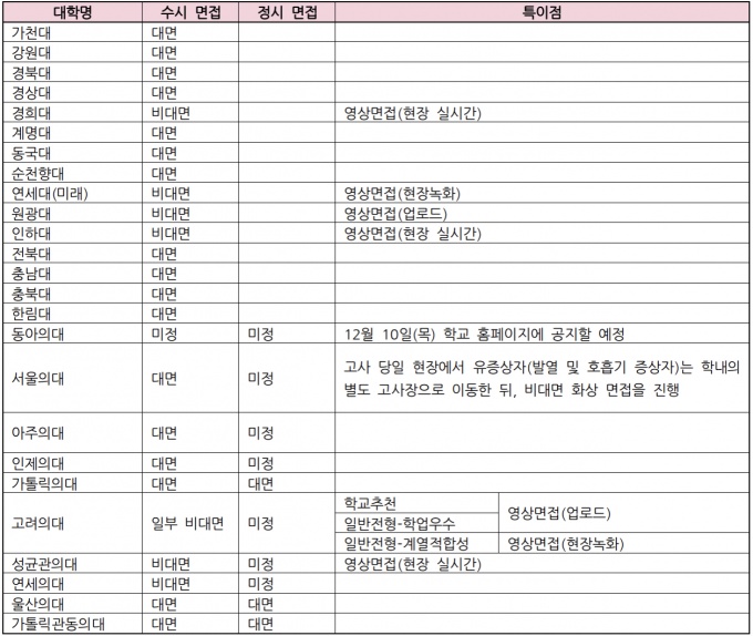 ºñ´ë¸é ¸éÁ¢ÀÌÁö¸¸ ¼öÇè»ýµéÀÌ ÇöÀåÀ» ¹æ¹®, ¿ø°Ý ÇÁ·Î±×·¥À» ÅëÇØ Æò°¡ÀÚ¿Í ½Ç½Ã°£À¸·Î ¸éÁ¢À» ÁøÇàÇÏ´Â ÀÇ´ëµµ ÀÖ´Ù. °æÈñ´ë, ¼º±Õ°ü´ë, ÀÎÇÏ´ë°¡ ÇØ´çµÈ´Ù.