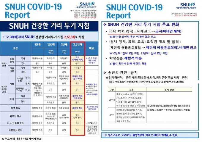 ¿¹¸¦ µé¾î ±³¼öµéÀÇ ÇÐȸÂü¼®°ú °ü·ÃÇØ¼± ‘´ë°ü°ø°£ ¼ö¿ëÀοøÀÇ 20%¸¸ Âü¼®Çϰí 2m ÀÌ»ó °Å¸®µÎ±â °£°ÝÀÌ ÁؼöµÈ °æ¿ì’¿Í °°ÀÌ ±¸Ã¼ÀûÀÎ ÁöħÀ» ¸¸µé¾ú´Ù. ¼¿ï¾Æ»êº´¿øÀº 2.5´Ü°è °Ý»ó¿¡ µû¶ó 9ÀϺÎÅÍ »õ·Î¿î ÁöħÀ» ½ÃÇàÇϰí ÀÖ´Ù.