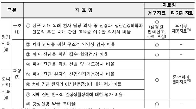 ½ÉÆò¿øÀÌ Á¦½ÃÇÑ ÁöÇ¥¾ÈÀº Æò°¡ÁöÇ¥ 4°³¿Í ¸ð´ÏÅ͸µÁöÇ¥ 4°³ µî ÃÑ 8°³ Ç׸ñÀ¸·Î ±¸¼ºµÆ´Ù.