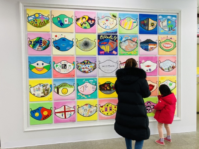 ÀÛǰ Âü°¡ÀÚµéÀº ‘¸¶½ºÅ©·Î ¸»ÇÏ´Ù’ ÁÖÁ¦·Î ¸¶½ºÅ©°¡ ±×·ÁÁø ĵ¹ö½º À§¿¡ Äڷγª19 ÇÏ¸é ¶°¿À¸£´Â ÀÚ½ÅÀÇ À̾߱⸦ ±×·È´Ù.