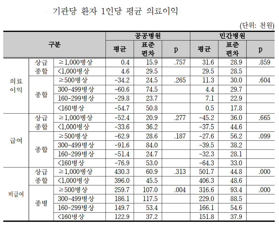 ¿¬±¸ÆÀÀº “°Ç°º¸Çè±Þ¿© Áø·á·®Àº 1000º´»óÀ̻󿡼´Â ¹Î°£º´¿ø, 1000º´»ó¹Ì¸¸¿¡¼´Â °ø°øº´¿ø¿¡¼ ´õ ¸¹¾ÒÀ¸¸ç, ºñ±Þ¿© Áø·á·®Àº º´»ó±Ô¸ð¿¡ »ó°ü¾øÀÌ ¹Î°£º´¿øÀÌ °ø°øº´¿øº¸´Ù ¸¹Àº °ÍÀ¸·Î ³ªÅ¸³µ´Ù”°í ¼³¸íÇß´Ù.