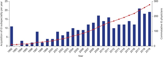 ¹Ú¼¼À± ¼øÃµÇâ´ë¼¿ïº´¿ø °¨¿°³»°ú ±³¼ö ¿¬±¸ÆÀÀº "Áö³ 1992³âºÎÅÍ 2019³â±îÁö ±¹³» ÀÇ»çµéÀÇ °¨¿°³»°ú Àü°ø ¼±Åà ÃßÀ̸¦ ºÐ¼®ÇÑ °á°ú, ÇöÀç Ȱµ¿ ÁßÀÎ °¨¿°³»°ú Àǻ簡 Àα¸ 10¸¸¸í ´ç 0.47¸í¿¡ ºÒ°úÇÏ´Ù"°í ¹àÇû´Ù.
