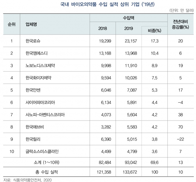 ¼öÀÔ ½ÇÀû 1À§ ±â¾÷Àº 'Çѱ¹·Î½´'´Ù. ±¹³» ¹ÙÀÌ¿ÀÀǾàǰ Àüü ¼öÀÔ¾× Áß 17%¿¡ ÇØ´çÇÏ´Â 2¾ï3157¸¸ ´Þ·¯(2529¾ï¿ø)¸¦ ±â·ÏÇß´Ù.