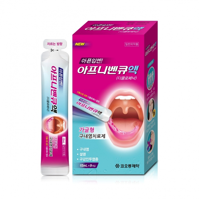 ¾ÆÇÁ´Ïº¥Å¥¾×Àº ÁøÅë¼Ò¿° ¼ººÐÀÎ µðŬ·ÎÆä³«ÀÌ ÇÔÀ¯µÈ °¡±ÛÇü Ä¡·áÁ¦·Î, Ä¡Àº¿°, ±¸³»¿°, Àεο° µîÀ¸·Î ÀÎÇÑ ÀÔ¾È ¿°Áõ ¿ÏÈ¿¡ È¿°ú¸¦ °®°í ÀÖÀ¸¸ç, ±âÁ¸ Ä¡·áÁ¦ÀÇ ´ÜÁ¡À¸·Î ²ÅÈ÷´Â »ç¿ë ½Ã ÅëÁõ, À̹°°¨ µîÀ» ¿ÏÈÇÑ Á¦Ç°ÀÌ´Ù.