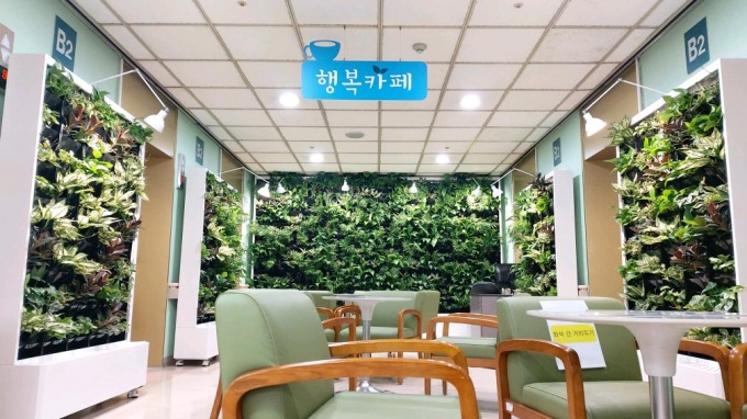 º´¿ø ÁöÇÏ 2ÃþÀÇ ±âÁ¸ ÈÞ°Ô°ø°£À» Ȱ¿ëÇØ ÃѸéÀû 22§³ÀÇ º®¸éÇü °¡µçÀ¸·Î Àçź»ýÇß´Ù. º´¿ø Á÷¿øµéÀº ¹æ¿ªÁöħ¿¡ µû¶ó Ä ¶ç¿ì±â µî °Å¸®µÎ±â¸¦ À¯ÁöÇÏ¸ç »õ·Î¿î È޽İø°£À¸·Î »ç¿ë ÁßÀÌ´Ù.
