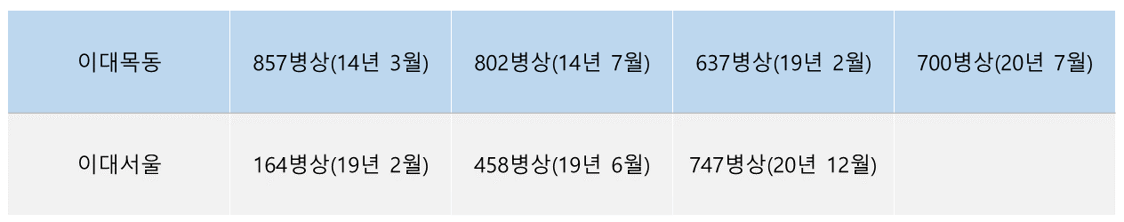 11ÀÏ ÀÌ´ëÀÇ·á¿ø¿¡ µû¸£¸é ¼¿ïº´¿ø Çã°¡ º´»ó ¼ö´Â Áö³ÇØ 12¿ù 747º´»óÀÌ µÆ´Ù. 2019³â2¿ù °³¿ø´ç½Ã Çã°¡º´»óÀº 164º´»óÀ¸·Î 2³â¿© ¸¸¿¡ 583º´»óÀÌ ´Ã¾î³µ´Ù. ¼¿ïº´¿øÀº ¿À´Â 2023³â±îÁö ´çÃÊ °èȹÇÑ 1014º´»ó Çã°¡¸¦ ¿Ï·áÇÒ °èȹÀÌ´Ù.