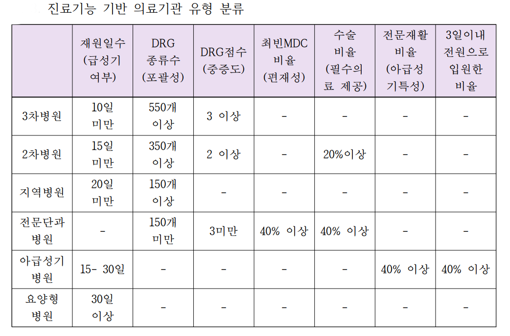 ÀÌ·¸°Ô ÇÏ¸é »ó±ÞÁ¾ÇÕº´¿ø»Ó¸¸ ¾Æ´Ï¶ó ÀϺΠÁ¾ÇÕº´¿øµµ 3Â÷º´¿øÀ¸·Î ºÐ·ùµÇ¸ç, Áö¿ªº´¿øÀº Á¾ÇÕº´¿ø°ú º´¿ø, Àü¹®´Ü°ú ÀÇ·á±â°üÀº º´ÀÇ¿øÀ¸·Î ¹¿© ±âÁ¸ÀÇ Á¾º° ºÐ·ù¿Í´Â ´Ù¸¥ ü°è¸¦ °®°Ô µÈ´Ù.
