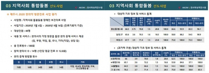 ÀÌ ¿øÀåÀº "Áö³ÇØ Á¦Áֽÿ¡¼ 48¸íÀÇ Àå¾ÖÀÎÀ» ´ë»óÀ¸·Î ½ÃÇàµÈ ‘Áö¿ª»çȸ ÅëÇÕµ¹º½ Àå¾ÖÀÎ º¸°ÇÀÇ·á »ç¾÷’ °á°ú¸¦ º¸°íÇϸç ÀÌ °°Àº »ç½ÇÀ» È®ÀÎÇÒ ¼ö ÀÖ´Ù"°í µ¡ºÙ¿´´Ù.