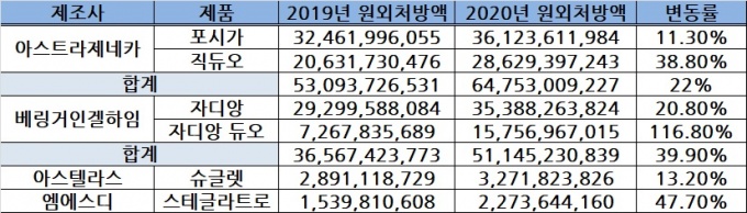 ¾Æ½ºÆ®¶óÁ¦³×Ä« 'Æ÷½Ã°¡(´ÙÆÄ±Û¸®Ç÷ÎÁø)'´Â Àü³â ´ëºñ 11.3% Áõ°¡ÇÑ 361¾ï¿ø, 'Á÷µà¿À(´ÙÆÄ±Û¸®Ç÷ÎÁø+¸ÞÆ®Æ÷¸£¹Î)´Â 38.8% ´Ã¾î³ 286¾ï¿øÀ̾ú´Ù.