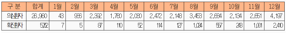 ÀÌ¼ÛµÈ ÀǽÉȯÀÚ 2¸¸6960¸í Áß È®ÁøÀÚ·Î È®ÀÎµÈ ÀοøÀº 21.3%ÀÎ 5752¸íÀ¸·Î ³ªÅ¸³µÀ¸¸ç È®ÁøÈ¯ÀÚµµ 12¿ù¿¡ °¡Àå ¸¹Àº 2410¸íÀÌ È®ÀεƴÙ.