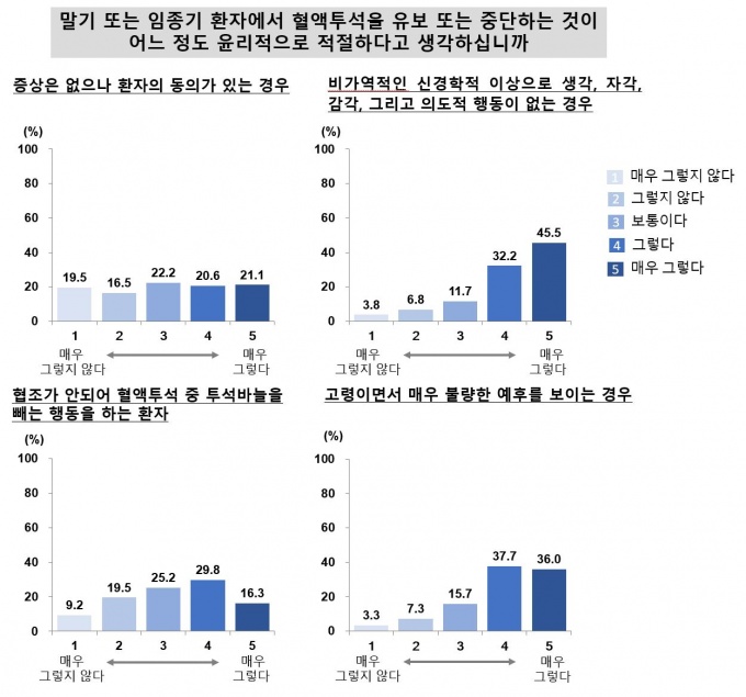 ¿¬¸íÀÇ·á°áÁ¤¹ý¿¡ µû¸¥ ¸»±â ¶Ç´Â ÀÓÁ¾±â ȯÀÚ¿¡¼ Åõ¼®À» À¯º¸Çϰųª Áß´ÜÇÏ´Â °Í¿¡ ´ëÇØ¼µµ Âù¼ºÇÏ´Â ÀǰßÀÌ ¸¹¾Ò´Ù (À¯º¸: 87.3%, Áß´Ü: 86.2%).