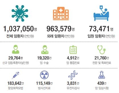 16ÀÏ ¼¿ï¾Æ»êº´¿ø¿¡ µû¸£¸é Áö³ÇØ ¾Ïº´¿øÀ» ãÀº ȯÀÚ´Â 103¸¸7050¸íÀÌ´Ù. ¿Ü·¡È¯ÀÚ´Â 96¸¸3579¸í, ÀÔ¿øÈ¯ÀÚ´Â 7¸¸3471¸íÀ¸·Î Áý°èµÆ´Ù.