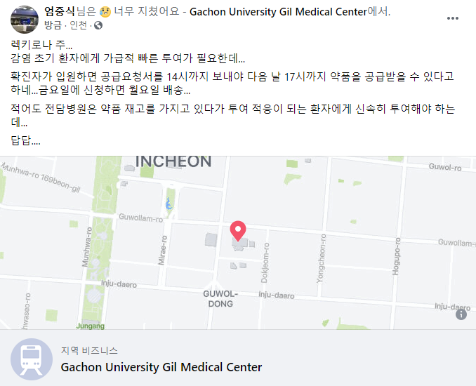 ¾öÁᫎ ±³¼ö´Â Áö³ 16ÀÏ ¿ÀÈÄ 3½Ã°æ ÀÚ½ÅÀÇ ÆäÀ̽ººÏ¿¡ '³Ê¹« ÁöÃÆ¾î¿ä'¶ó°í ¼Ò°³Çϸç "·ºÅ°·Î³ªÁÖ... °¨¿° Ãʱâ ȯÀÚ¿¡°Ô °¡±ÞÀû ºü¸¥ Åõ¿©°¡ ÇÊ¿äÇѵ¥ È®ÁøÀÚ°¡ ÀÔ¿øÇÏ¸é °ø±Þ ¿äû¼¸¦ ±Ý¿äÀÏ¿¡ ½ÅûÇÏ¸é ¿ù¿äÀÏ¿¡ ¿Â´Ù"¸ç ¾Æ½¬¿òÀ» ³ªÅ¸³»´Â ±ÛÀ» ¿Ã·È´Ù.