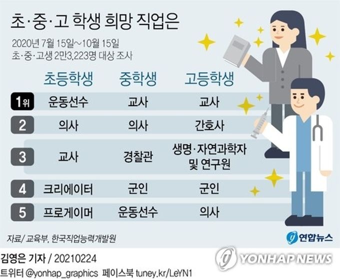Èñ¸Á Á÷¾÷ Á¶»ç °á°ú ÃʵîÇлý »çÀÌ¿¡¼ ºÎµ¿ÀÇ 1À§´Â ¿îµ¿¼±¼ö(8.8%)¿´´Ù. ¿îµ¿¼±¼ö´Â 2018³â, 2019³â¿¡ À̾î ÃʵîÇлý Èñ¸Á Á÷¾÷ 1À§¸¦ ³»´Þ·È´Ù.