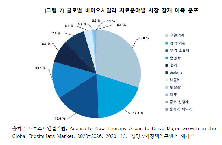 »ý¸í°øÇÐÁ¤Ã¥¿¬±¸¼¾ÅÍ´Â Ä¡·á ºÐ¾ßº° ¹ÙÀÌ¿À½Ã¹Ð·¯ ½ÃÀå Àü¸ÁÀ¸·Î ±Ù°ñ°Ý°è(30%), °¨°¢±â°ü(19.3%), ¸é¿ª Á¶ÀýÁ¦(16.6%), Á¾¾çÇÐ(13.5%)½ÃÀåÀÌ Àüü ½ÃÀåÀÇ 80% Â÷ÁöÇϸç, Áö¼ÓÀû À¸·Î ³ôÀº ½ÃÀå ¼öÀÍÀ» âÃâÇÒ °ÍÀ¸·Î ³»´ÙºÃ´Ù.
