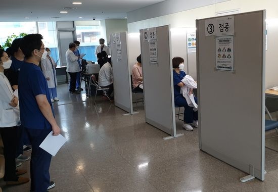 ¿¹¹æ Á¢Á¾À» ÁøÇàÇÑ °¨¿°°ü¸®½ÇÀº ÇʼöÀη ±Ù¹« ½ºÄÉÁÙ¿¡ ¸ÂÃç »çÈê°£ ¼øÂ÷ÀûÀ¸·Î Á¢Á¾À» ÁøÇàÇß´Ù. 2Â÷ Á¢Á¾Àº 3¿ù ¸» ÁøÇàµÈ´Ù.