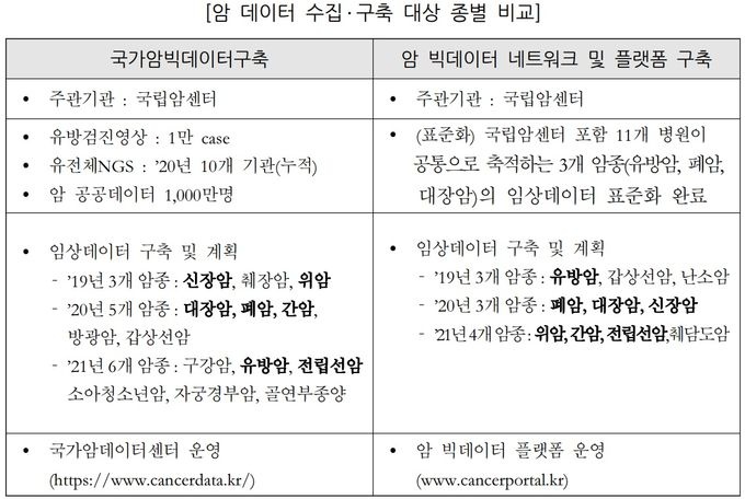 µÎ »ç¾÷Àº ‘¾Ï µ¥ÀÌÅÍ ±¸Ãà’À̶ó´Â »ç¾÷ ¸ñÀûÀÌ À¯»çÇÏ°í µ¥ÀÌÅÍ ¼öÁý ³»¿ëÀº ¹°·Ð »ç¾÷ ÁÖ°ü±â°ü ¿ª½Ã ±¹¸³¾Ï¼¾ÅÍ·Î µ¿ÀÏÇÏ´Ù.