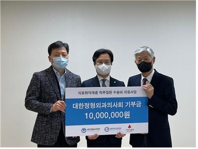Á¤Çü¿Ü°úÇÐȸ¿Í ôÃ߿ܰúÇÐȸ µîÀº »ç¶ûÀÇ ¿¸Å¿Í ¼ÕÀâ°í ‘ÀÇ·áÃë¾à°èÃþ ôÃßÁúȯ ¼ö¼úºñ Áö¿ø»ç¾÷‘À» ½ÃÇà Áß¿¡ ÀÖ´Ù. ¼ö¼úºñ Áö¿ø ¸ñÀûÀº ôÃßÁúȯÀ¸·Î À°Ã¼Àû, °æÁ¦Àû ¾î·Á¿òÀ» °Þ°í Àִ ȯÀÚ¿¡°Ô ¼ö¼úºñ ÀϺΠÁö¿øÀ» ÅëÇÏ¿© »îÀÇ Áú Çâ»óÀ» µµ¸ðÇϱâ À§ÇÔÀÌ´Ù.