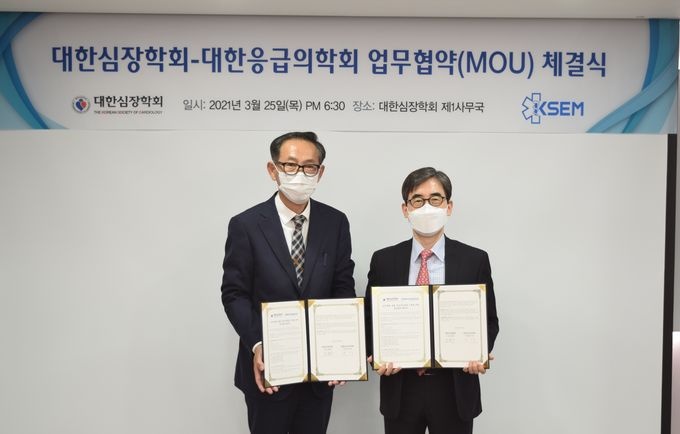 [µ¥Àϸ®¸Þµð ¹é¼ºÁÖ ±âÀÚ] ´ëÇѽÉÀåÇÐȸ(ÀÌ»çÀå ±èÈ¿¼ö)¿Í ´ëÇÑÀÀ±ÞÀÇÇÐȸ(ÀÌ»çÀå ÇãŹ)´Â ½ÉÀå·Ç÷°ü Áúȯ ÀÀ±ÞÀÇ·áü°è ±¸ÃàÀ» À§ÇÑ ¾÷¹«Çù¾à(MOU)À» ü°áÇß´Ù.