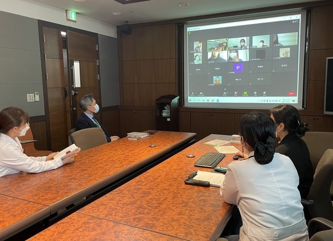 ¹ß´ë½ÄÀº ÃÑ 23¸íÀÇ ´ëÇлý ºÀ»çÀÚµéÀÌ Âü¿©ÇÑ °¡¿îµ¥ Äڷγª19 È®»êÀ» ¹æÁöÇÏ°í »çȸÀû °Å¸®µÎ±â¸¦ ½ÇõÇϱâ À§ÇØ ¿Â¶óÀÎÀ¸·Î ÁøÇàÇß´Ù.