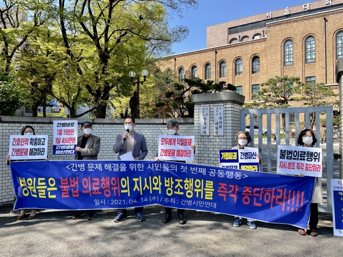 [µ¥Àϸ®¸Þµð ÀÓ¼ö¹Î ±âÀÚ] °£º´½Ã¹Î¿¬´ë µî 6°³ ¿¬´ë ´Üü°¡ ±¹³» ´ëÇüº´¿øµéÀÌ °£º´ÀÎ ¹× º¸È£ÀÚ¿¡°Ô ÀÇ·áÇàÀ§¸¦ ¶°³Ñ°Ü ȯÀÚ ¾ÈÀü¿¡ ½É°¢ÇÑ À§ÇùÀ» °¡Çϰí ÀÖ´Ù°í ÁÖÀåÇÏ¸é¼ ÀÇ·á¹ý À§¹Ý ÇàÀ§·Î °í¹ßÇß´Ù.
