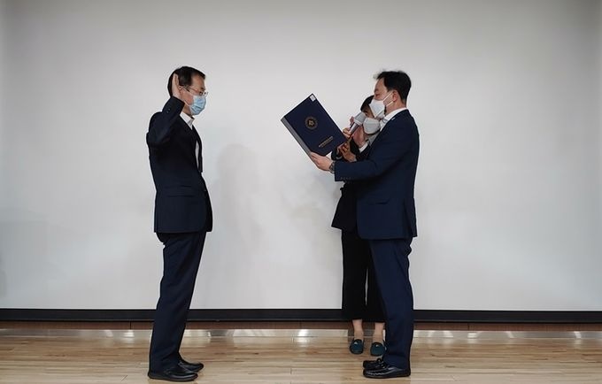 ¹Úº´ÅÂ‧ÀÌÇм±‧±èÀÎö‧Àü¼ºÈñ‧ÀÌÈļ® ºÎȸÀå, È«¼º»ï‧¹ÚÁ¾Åà °¨»ç°¡ ÀÓ¿ëÀåÀ» ¹Þ¾Ò°í, À̾î ÁøÇàµÈ °£´ãȸ¿¡¼´Â 2021³â Çùȸ »ç¾÷ ¿î¿µ¿¡ °üÇØ ½Éµµ ÀÖ´Â ÀǰßÀ» ±³È¯Çß´Ù.