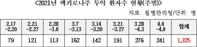20ÀÏ ÀüºÀ¹Î ¹«¼Ò¼Ó ÀÇ¿ø½ÇÀÌ Áúº´°ü¸®Ã»(Áúº´Ã»)À¸·ÎºÎÅÍ Á¦Ãâ ¹ÞÀº ‘·ºÅ°·Î³ª Åõ¾à ȯÀÚ ÇöȲ’¿¡ µû¸£¸é Áö³ 9ÀÏ ±âÁØ ·ºÅ°·Î´© Åõ¿© ȯÀÚ ¼ö´Â 1325¸í¿¡ ºÒ°úÇß´Ù.