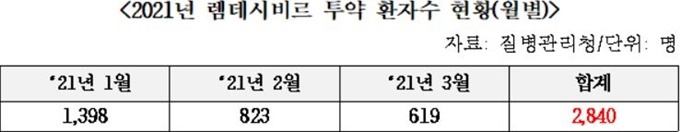 ¹Ý¸é ÁßÁõȯÀÚ Ä¡·áÁ¦ÀÎ ·½µ¥½Ãºñ¸£ÀÇ °æ¿ì Á¤ºÎ ¿¹»óÄ¡º¸´Ù ¸¹ÀÌ ¾²¿´´Ù. Áúº´Ã»Àº ¿ÃÇØ 1ºÐ±â ÁßÁõȯÀÚ¸¦ 2506¸íÀ¸·Î ¿¹»óÇØ ¿¹ºñºñ¸¦ ½ÅûÇßÀ¸³ª, ½ÇÁ¦ Åõ¾à ȯÀÚ ¼ö´Â 2840¸íÀ¸·Î 13%°¡·® ÃʰúµÆ´Ù.