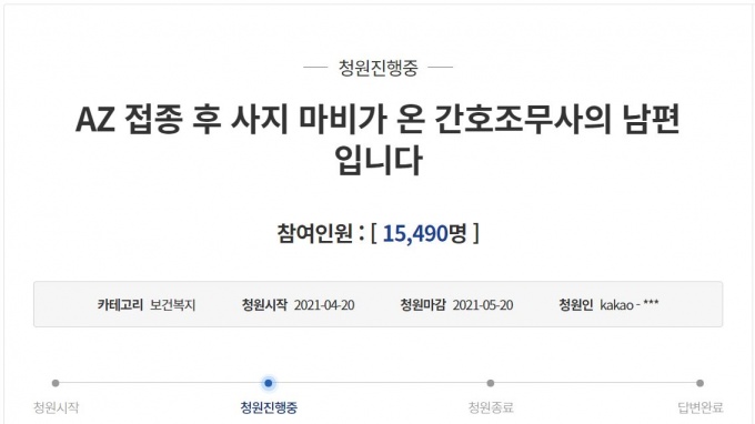 [µ¥Àϸ®¸Þµð ¹Ú¹Î½Ä ±âÀÚ] ¾Æ½ºÆ®¶óÁ¦³×Ä«(AZ) ¹é½ÅÀ» ¸ÂÀº ÈÄ »çÁö°¡ ¸¶ºñµÈ °£È£Á¶¹«»çÀÇ ³²ÆíÀÌ Á¤ºÎ¸¦ ºñÆÇÇϴ û¿Í´ë ±¹¹Îû¿ø ±ÛÀ» ¿Ã·È´Ù.