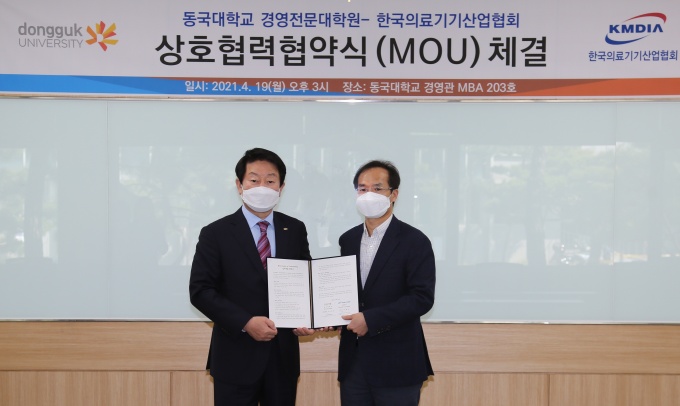 [µ¥Àϸ®¸Þµð ¹Ú¹Î½Ä ±âÀÚ] Çѱ¹ÀÇ·á±â±â»ê¾÷Çùȸ(ȸÀå À¯Ã¶¿í)´Â ÃÖ±Ù µ¿±¹´ëÇб³ °æ¿µÀü¹®´ëÇпø(¿øÀå ¹ÚÂù±Ô)°ú ‘ÀÇ·á±â±âÇõ½Å°æ¿µ MBA °úÁ¤ ¿î¿µ’¿¡ °üÇÑ ¾÷¹«Çù¾àÀ» ü°áÇß´Ù.