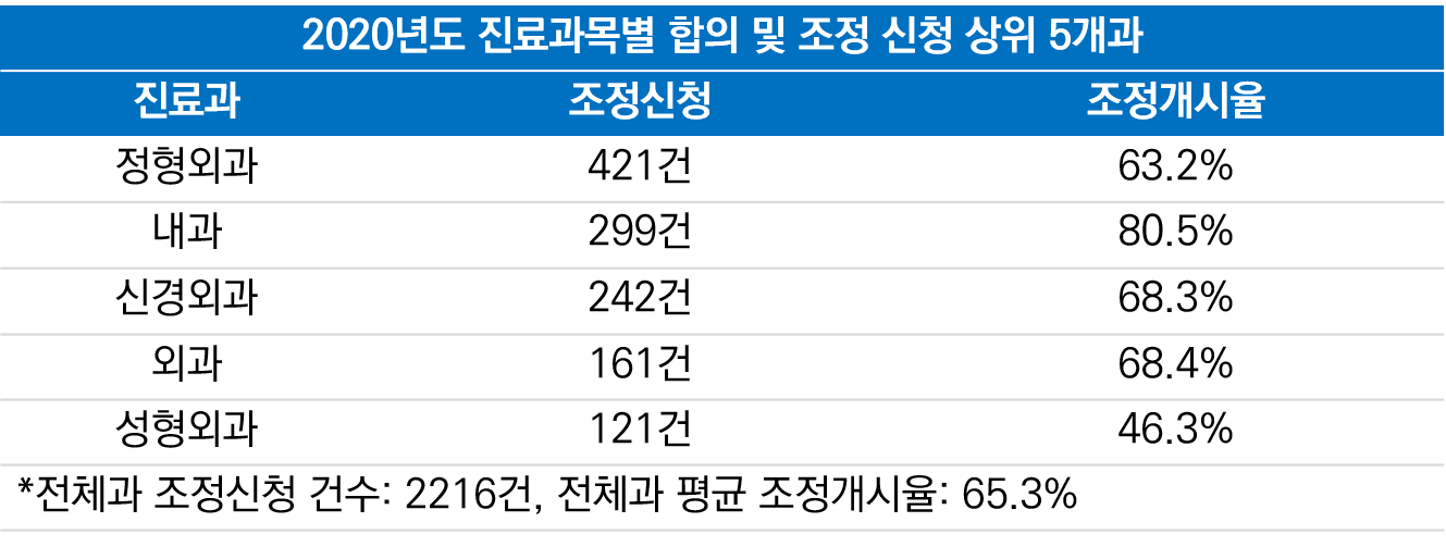Á¶Á¤½Åû °Ç¼ö¸¦ »ìÆìº¸¸é Àüü°ú Áß Á¤Çü¿Ü°ú°¡ 421°ÇÀ¸·Î ¾ÐµµÀûÀÎ °Ç¼ö¸¦ ±â·ÏÇß´Ù. ÀÌ´Â 2À§¿¡ ¿À¸¥ ¡ã³»°ú(299°Ç)¿¡ ºñÇØ 100¿©°ÇÀÌ ³Ñ°Ô ¸¹Àº ¼öÄ¡°í Àüü°ú Á¶Á¤½Åû °Ç¼öÀÇ ¾à 19%¿¡ ÇØ´çÇÑ´Ù.