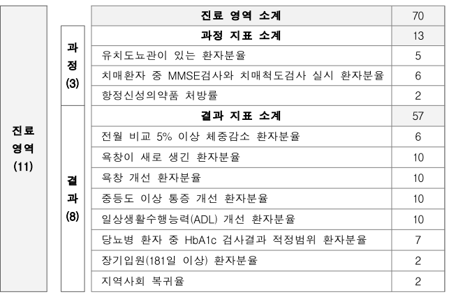 ƯÈ÷ Áø·á¿µ¿ª¿¡¼´Â ¡ã¿åâÀÌ »õ·Î »ý±ä ȯÀÚºÐÀ² ¡ã¿åâ °³¼± ȯÀÚºÐÀ² ¡ãÁߵ ÀÌ»ó ÅëÁõ °³¼± ȯÀÚºÐÀ² ¡ãÀÏ»ó»ýȰ¼öÇà´É·Â(ADL) °³¼± ȯÀÚºÐÀ² µîÀÇ ÁöÇ¥ °¡ÁßÄ¡°¡ ³ô´Ù.