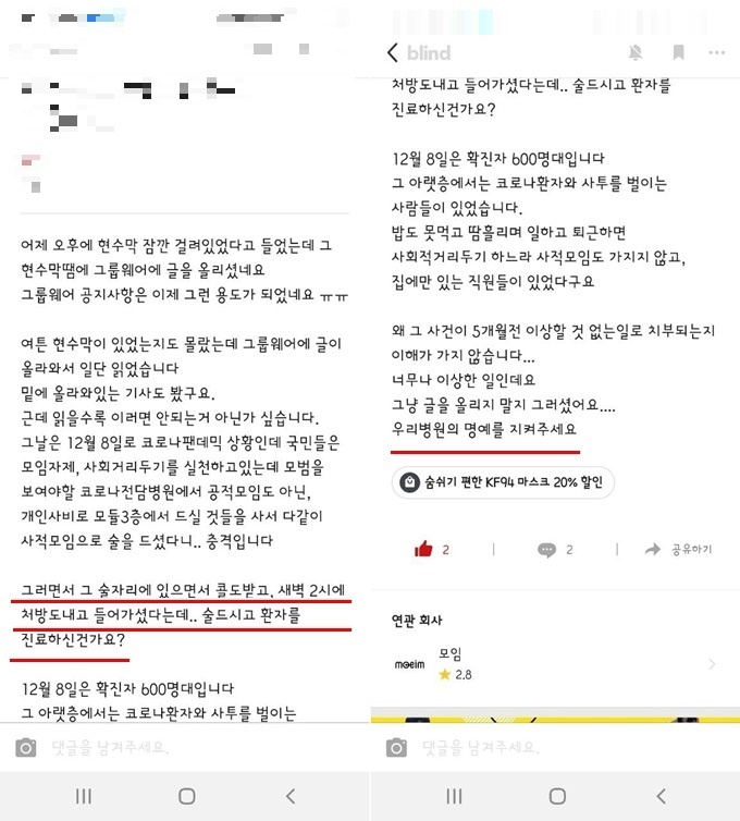 ±×´Â µ¥Àϸ®¸Þµð¿ÍÀÇ ÅëÈ¿¡¼ “¼úÀ» ¸¶½Ã°í ȯÀÚ¸¦ º» ÀûÀÌ ¾ø´Ù”¸ç “´çÁ÷Àǰ¡ ÀÖ´Ù. (ȯÀÚ °ü·Ã) º¸°í¸¦ ¹Þ°í ÀÌ·± °Ç Áø·á¸¦ ÇÏ´Â °Ô ¾Æ´Ï´Ù. ó¹æÀº ´çÁ÷ÀÇ¿¡°Ô ÀÌ·± Àú·± °É Çϸé ÁÁ°Ú´Ù°í ¾ê±â¸¦ ÇÑ °Í”À̶ó°í ´äÇß´Ù.