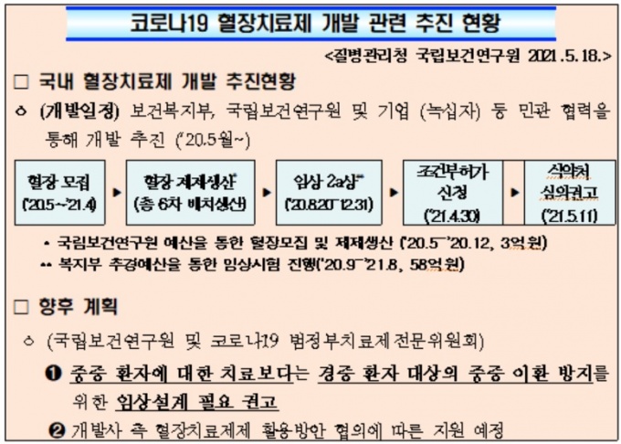±¹¸³º¸°Ç¿¬±¸¿øÀº À̹ø Äڷγª19 Ç÷ÀåÄ¡·áÁ¦ ÀÓ»óÆò°¡¿¡¼ ¿ÏÄ¡ÀÚ Ç÷¾×À» ÀÌ¿ëÇϹǷΠ´ë·®»ý»êÀÌ ¾î·Á¿ö Ä¡·á¸ñÀû »ç¿ë½ÂÀÎÀ» ÅëÇÑ È°¿ë¹æ¾ÈÀ» ±Ç°íÇÑ °ÍÀ¸·Î ¾Ë·ÁÁ³´Ù.