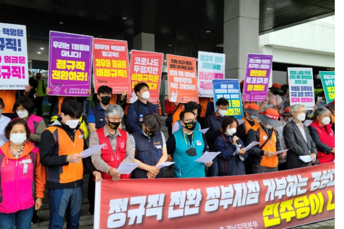 °æ»ó´ëº´¿ø ºñÁ¤±ÔÁ÷ ³ëµ¿ÀÚµéÀº Á¤±ÔÁ÷ ÀüȯÀ» Ã˱¸ÇÏ¸é¼ Áö³ 5¿ù 3ÀϺÎÅÍ 18Àϰ ÆÄ¾÷ ÁßÀÌ´Ù.
