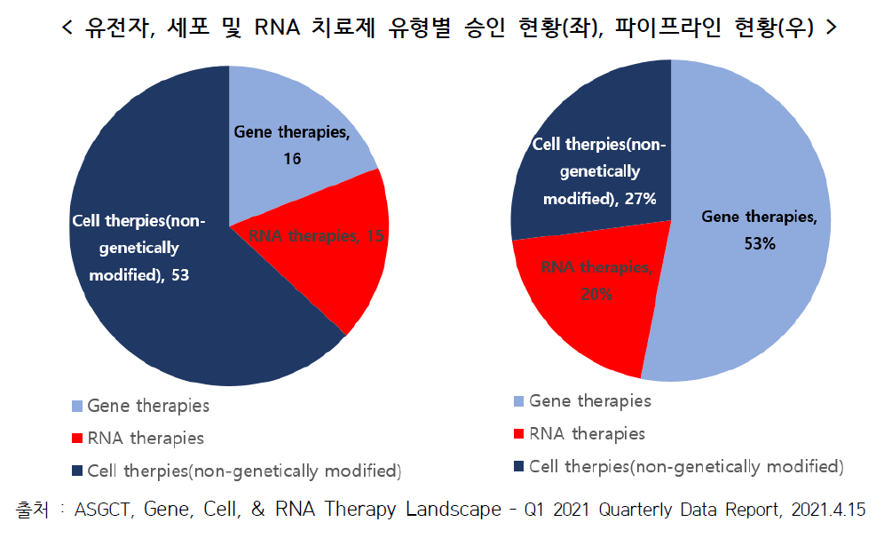 ½ÇÁ¦ 2021³â 1ºÐ±â ±âÁØÀ¸·Î 3474°³ ÆÄÀÌÇÁ¶óÀÎ Áß À¯ÀüÀÚÄ¡·áÁ¦ ¶Ç´Â À¯ÀüÀÚ º¯Çü ¼¼Æ÷Ä¡·áÁ¦°¡ 53%¿¡ ´ÞÇÑ´Ù.