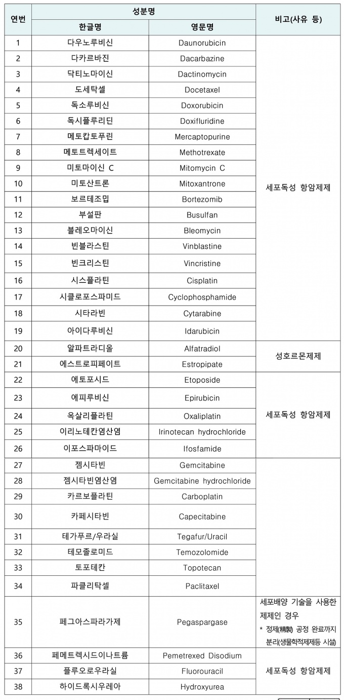 À̹ø¿¡ °ø°³µÇ´Â ÀÛ¾÷¼Ò ºÐ¸® ´ë»ó 38°³ ¼ººÐÀº ‘¼¼Æ÷µ¶¼º Ç×¾ÏÁ¦’, ‘¼ºÈ£¸£¸óÁ¦’ µî Á¦Á¶°øÁ¤ °úÁ¤ Áß¿¡ ¹Ì·®ÀÌ¶óµµ ´Ù¸¥ ÀǾàǰ¿¡ ³ëÃâµÇ´Â °æ¿ì ÀÎü À§ÇØ ¿ì·Á°¡ Ä¿¼ ¹Ì±¹, À¯·´ µî Á¦¾à ¼±Áø±¹¿¡¼µµ ÀÛ¾÷¼Ò¸¦ ºÐ¸®ÇÏ´Â ¼ººÐµéÀÌ´Ù.