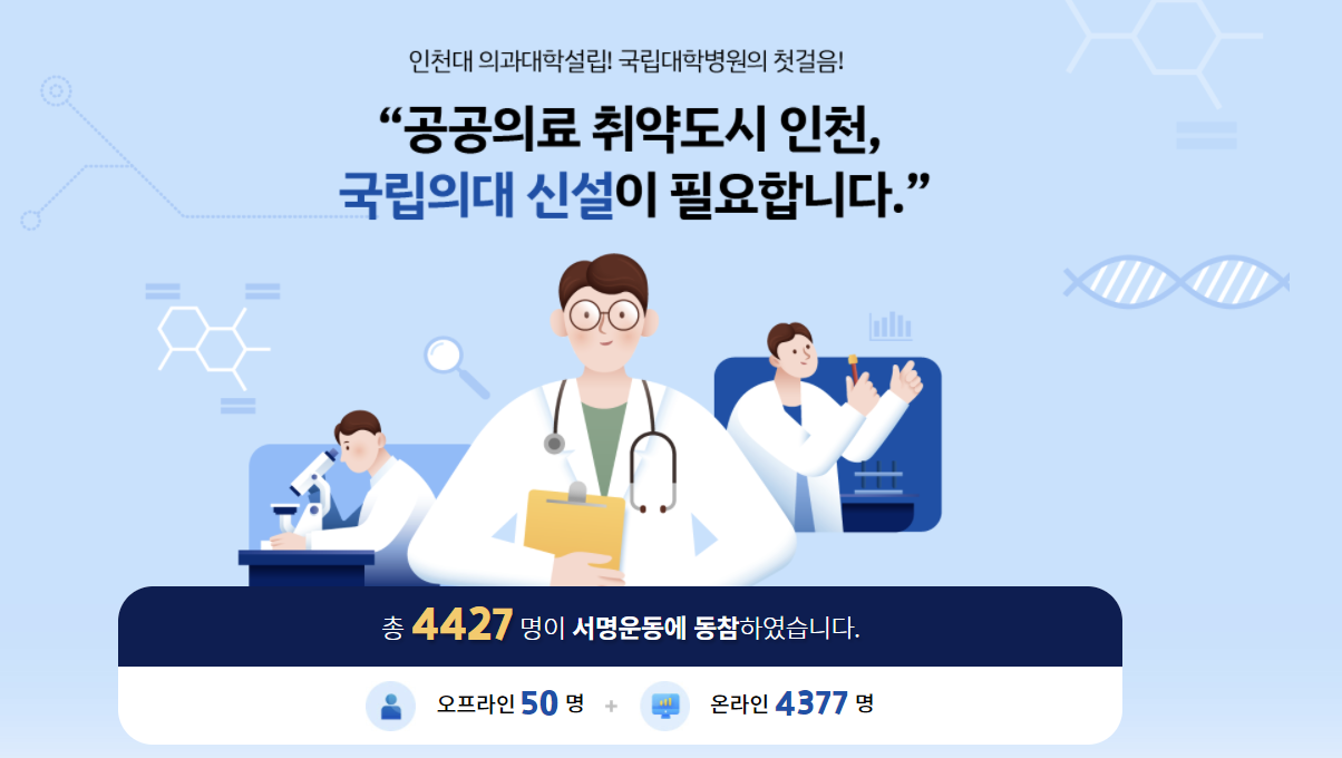 ÀÎõ´ëÇб³ Á¦38´ë ÃÑÇлýȸ´Â Áö³ 21ÀϺÎÅÍ ÀÎõ´ë ÀÇ´ë ¼³¸³À» À§ÇØ ¼¸í¿îµ¿À» ½ÃÀÛÇß´Ù. ÇØ´ç ¼¸í ¿îµ¿Àº ÀÎõ½Ã¹Î »Ó ¾Æ´Ï¶ó Àü±¹ ±¹¹Î ¸ðµÎ Âü¿© °¡´ÉÇϰí 25ÀÏ 12½Ã ±âÁØ 4427¸íÀÌ µ¿ÂüÇß´Ù.
