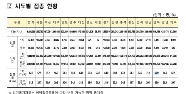 Àü³¯ 0½Ã ±âÁØÀ¸·Î Áý°èµÈ ½Ãµµº° ¹é½Å Á¢Á¾ ÇöȲÀ» º¸¸é ¼¼Á¾½Ã¿¡¼´Â Á¢Á¾ ´ë»óÀÚ °¡¿îµ¥ 72.2%°¡ 1Â÷ Á¢Á¾À» ¸¶ÃÆÁö¸¸, ºÎ»ê¿¡¼´Â 1Â÷ Á¢Á¾·üÀÌ 55.7% ¼öÁØÀ¸·Î ±× Â÷ÀÌ´Â 16.5% Æ÷ÀÎÆ®³ª µÈ´Ù.