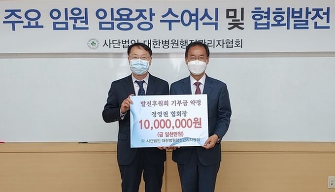 [µ¥Àϸ®¸Þµð ¹Ú´ëÁø ±âÀÚ] ´ëÇѺ´¿øÇàÁ¤°ü¸®ÀÚÇùȸ Á¤¿µ±Ç ȸÀåÀÌ Çùȸ ¹ßÀüÀ» À§ÇØ 1000¸¸¿øÀ» ±âºÎÇß´Ù. Áö³ÇØ 12¿ù Çùȸ°¡ °øÀ͹ýÀÎ(ÁöÁ¤±âºÎ±Ý´Üü)À¸·Î ÁöÁ¤µÈ ÈÄ Ã¹ ¹øÂ° ±âºÎ »ç·Ê´Ù.